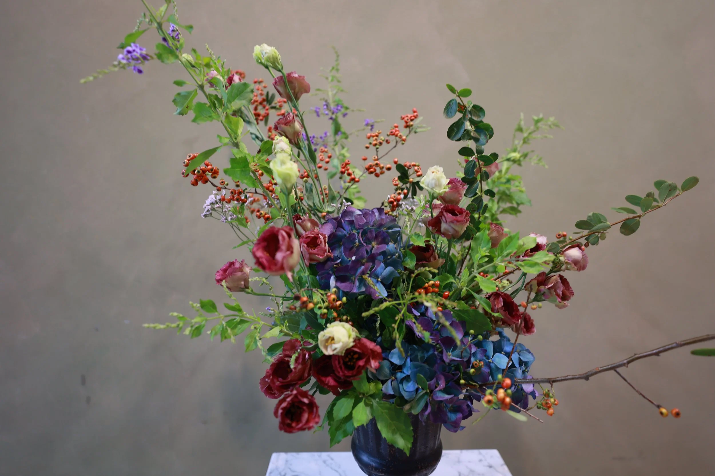 Materials|Platycodon grandiflorus, Hydrangea, Malus komarovii, Duranta erecta, Limonium hybrid