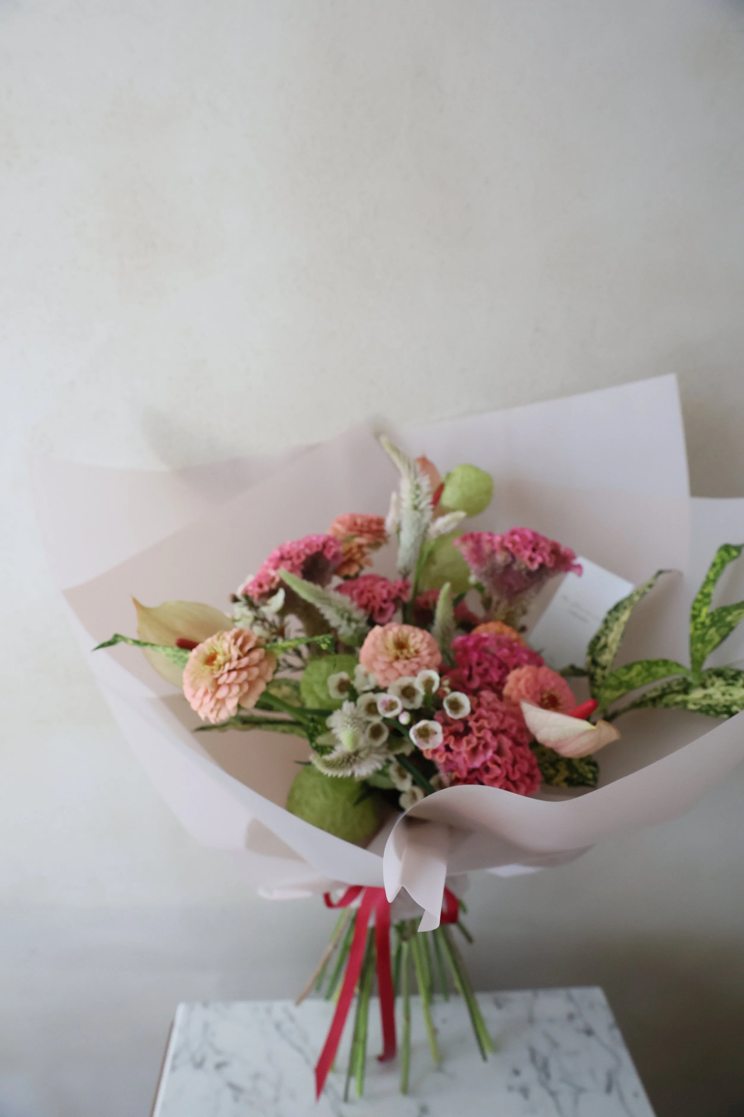 使用當季市場新鮮花材,由花藝師為您搭配。恕無法指定特定花材。