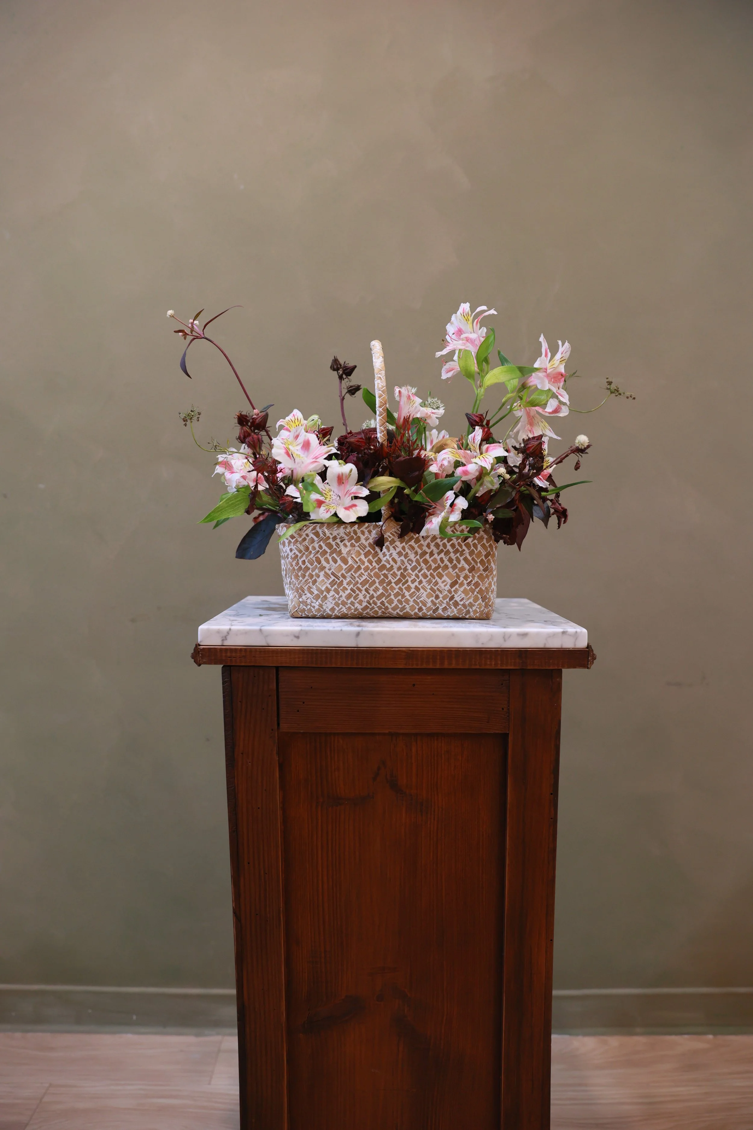 materials|Alstroemeria, Hibiscus sabdariffa, Orlaya grandiflora, Bletilla striata, Alternanthera bettzickiana, Purple Onion, Apple