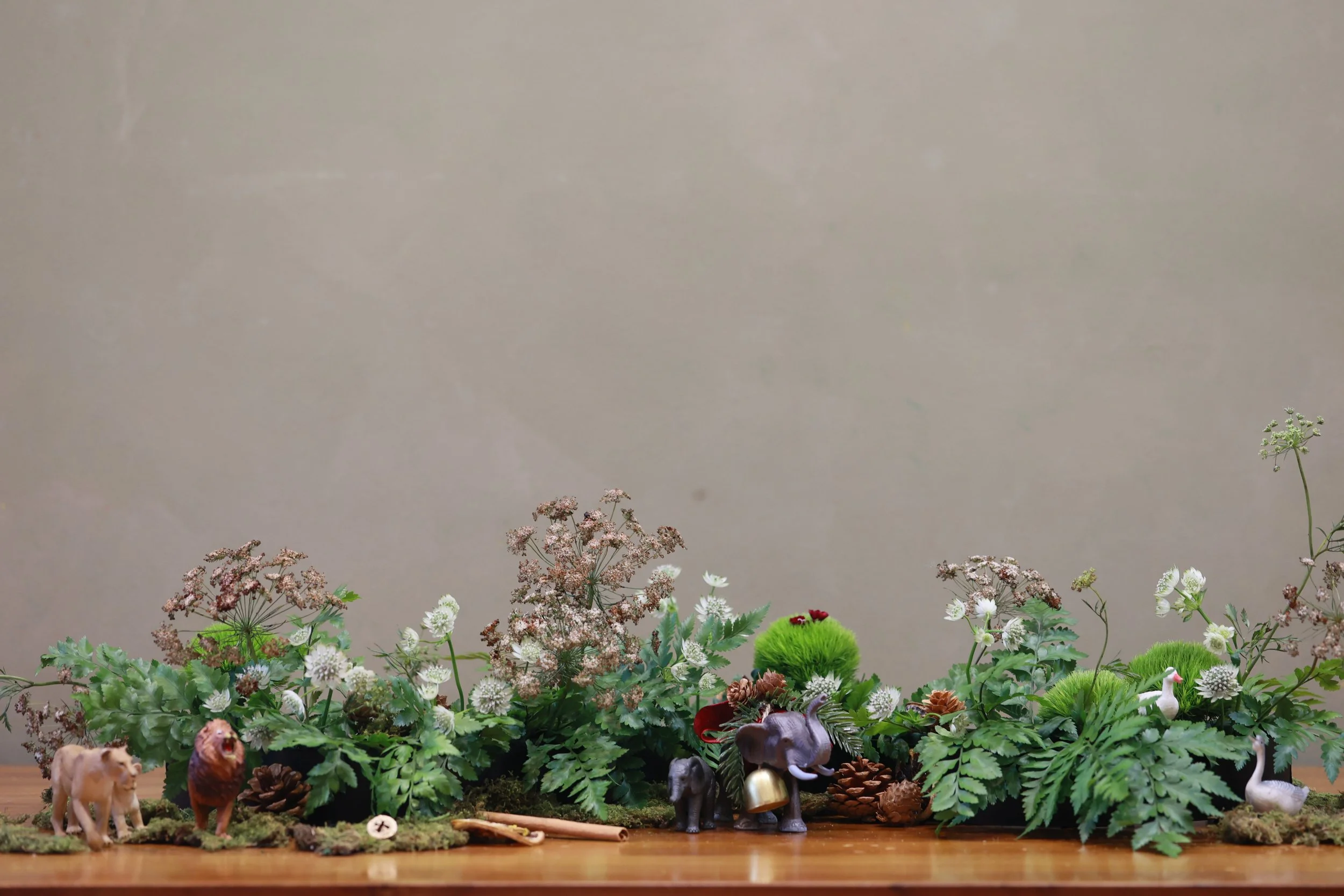 materials|Dried moss, Rumohra adiantiformis, Daucus carota, Bletilla striata, Dianthus chinensis, dried fruits