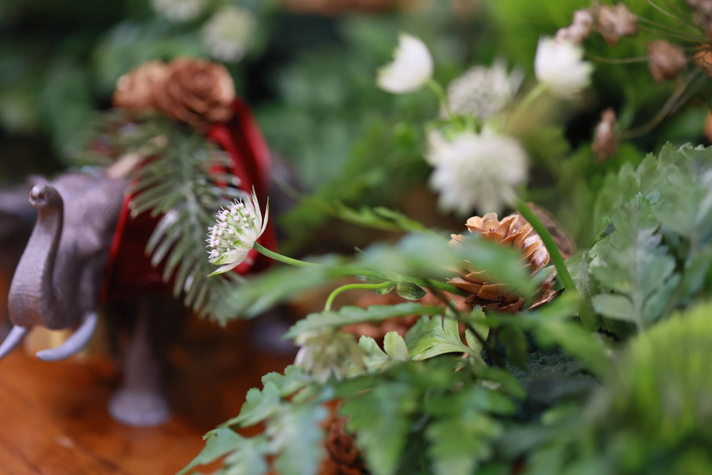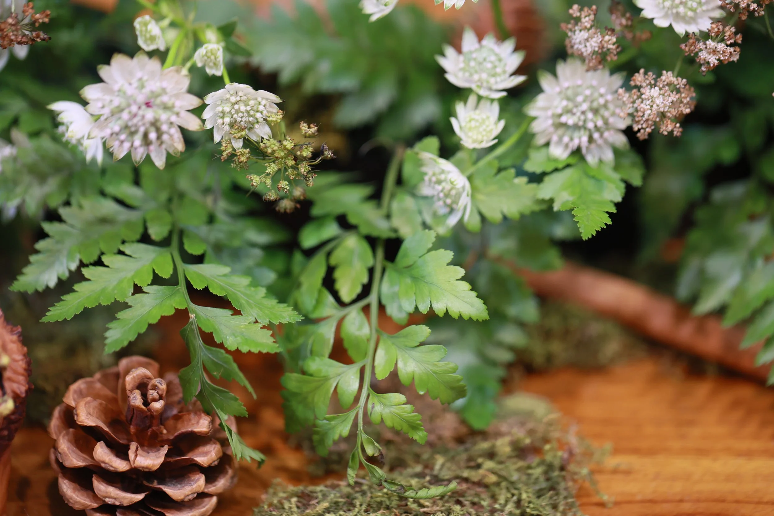 材料|乾燥苔蘚、高山羊齒、蕾絲花、白芨花、綠石竹、乾果物