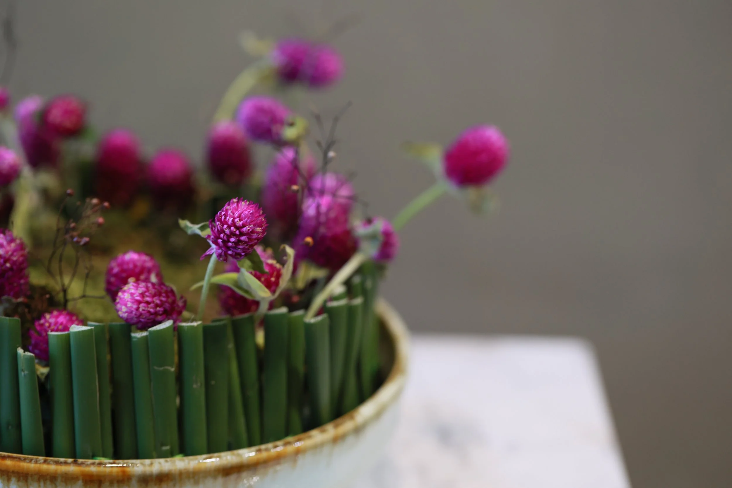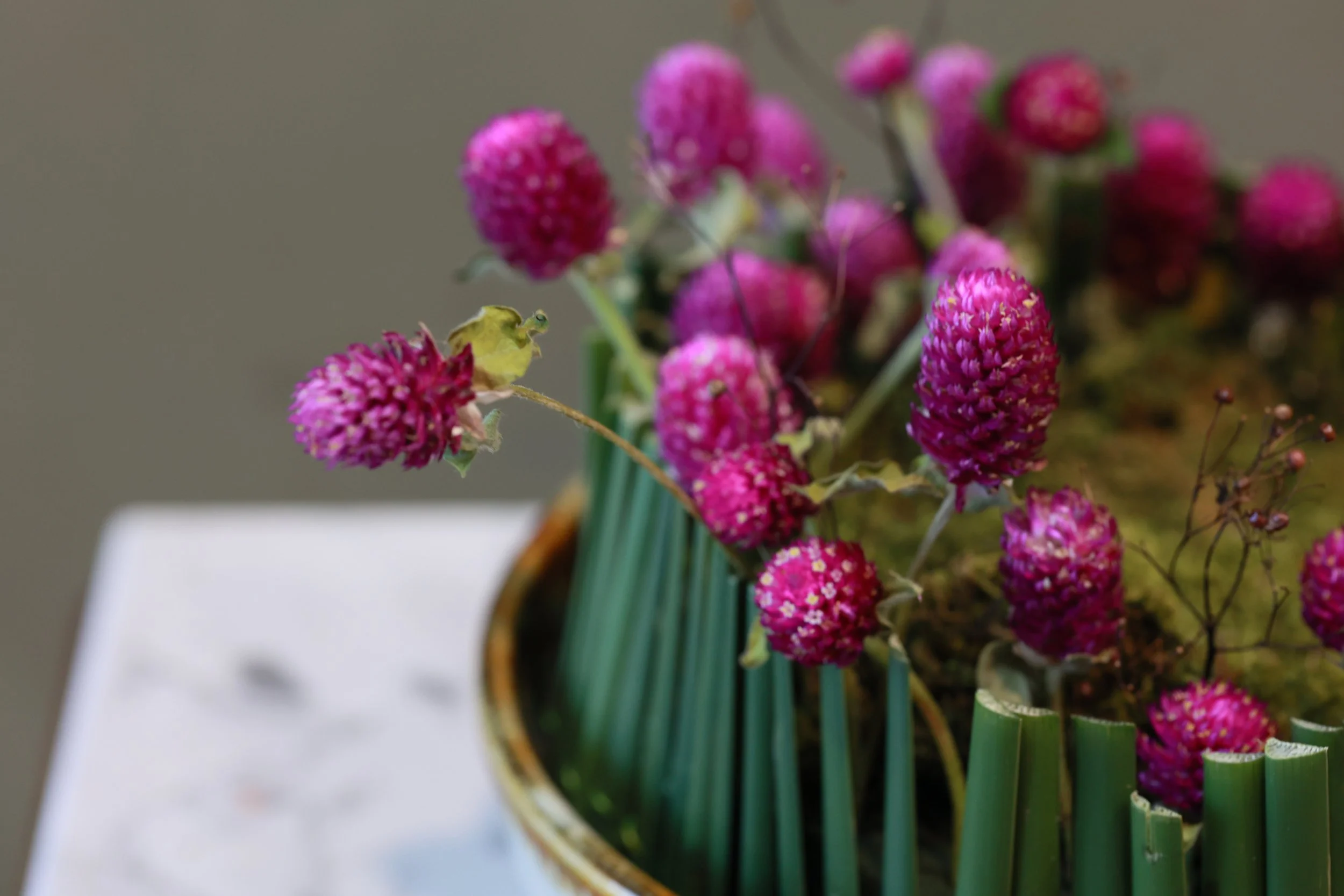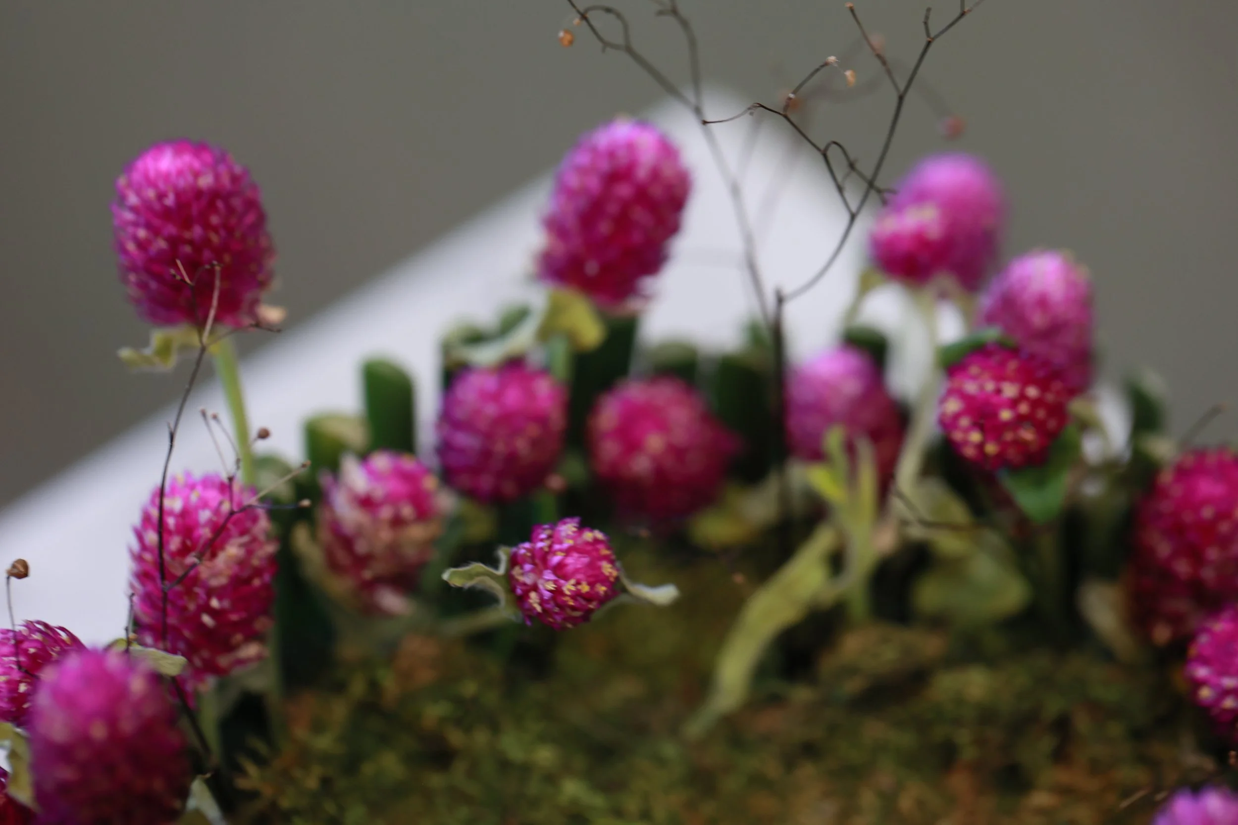 materials|Globeamaranth, sapodilla, moss