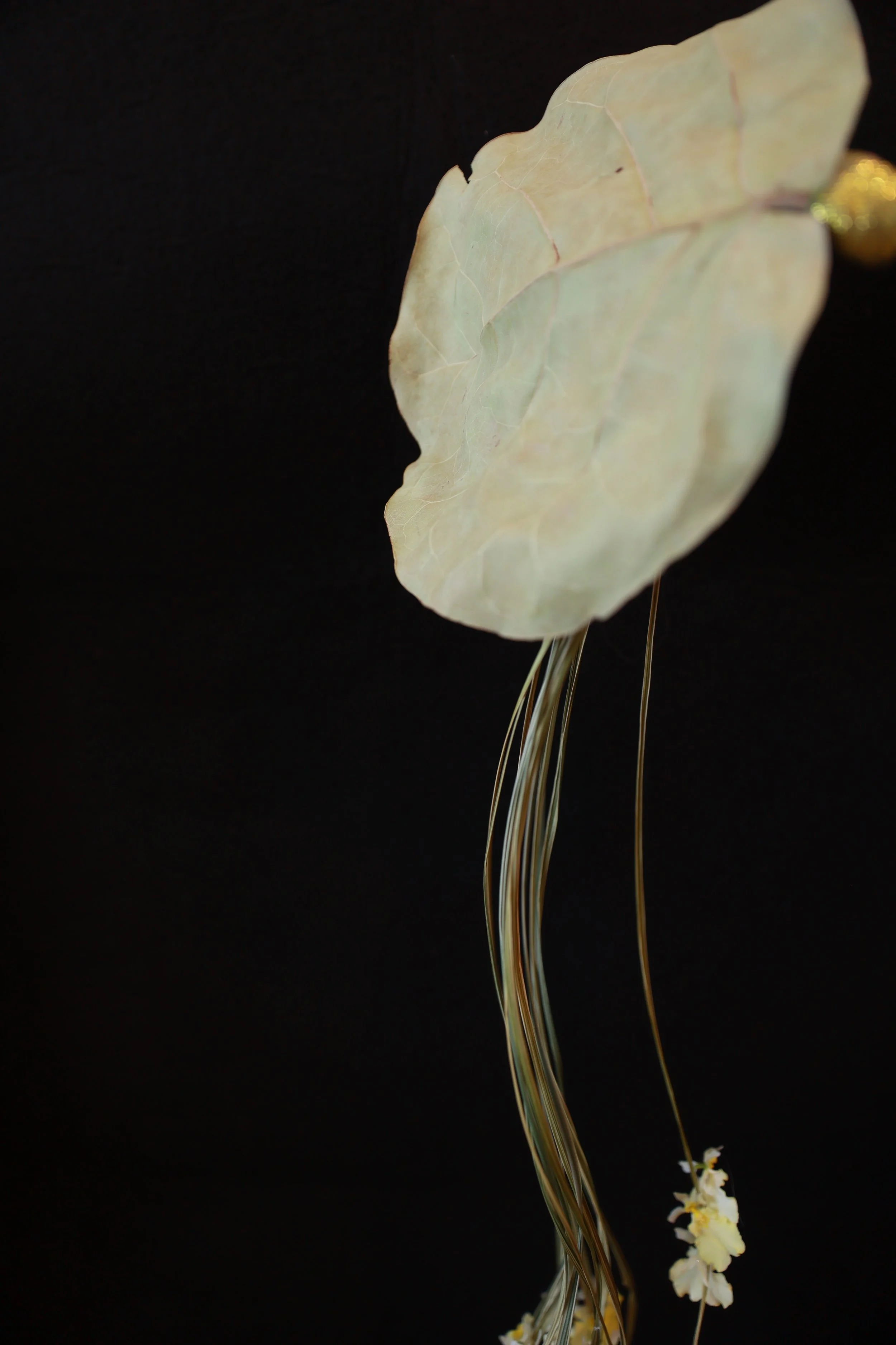材料|海葡萄葉、春蘭(乾燥)、月光文心蘭
